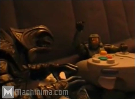 | Master Chief broadens his horizons by playing Super Smash Bros. Brawl with Arbiter. | ||||